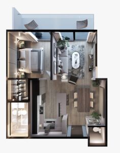 1 BED / 1.5 BATH model starting for $173,000 for 603 sq ft (56 sq m) plus additional 140 sq ft (13 sq m) of balcony up to $195,000 for 785 sq ft (73 sq m) plus 140 sq ft (13 sq m) of balcony space.